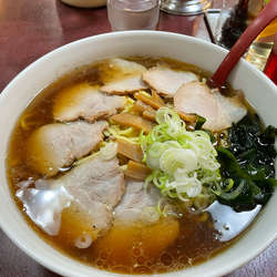 シンプルな醤油に中太ちぢれ麺。