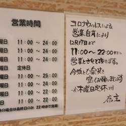 | 営業時間 | 月・火・水・木・土 11時~24時、 金 11時~25時 日・祝 11時~22時 |