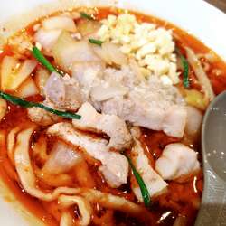 少しして写真の一杯が提供されました。スープはブラック系の濃い醤油色をしており、背脂がプカプカ浮かんでおります。スープ表... 続きを見る