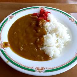 タマネギ多めの甘口カレー。450円は安いですね。