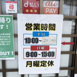 | 営業時間 | 10:00~20:00 [日] 10:00~15:00 |