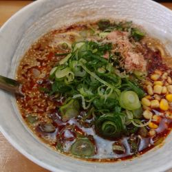 いりこ満載ながらもエグみや苦味、塩味の角がなく上品なスープ。もちもちのオリジナル麺はここでしか味わえない不思議な食感と喉越し。スープとの相性が絶妙。加えて九条ねぎがネギ好きとしては堪らなく旨い。担々... 続きを見る