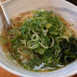 11時半過ぎ初訪、九条ねぎたっぷりいりこそばと九条ねぎたっぷり魚介担々麺をポチり、店頭並びに接続。30分くらいして店内に、程なくして着丼。