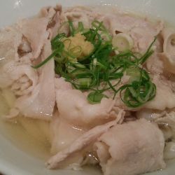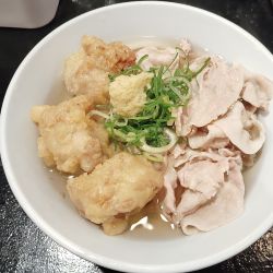 鶏天が3つ、豚肉の湯がいたのが乗っていてボリュームはなかなか