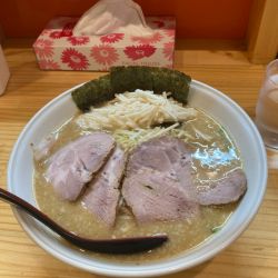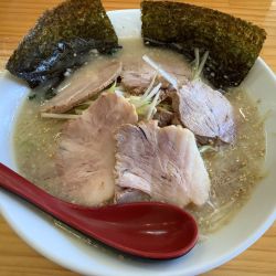 待つ事4分で着丼。熱々のスープは直系のラーショより、