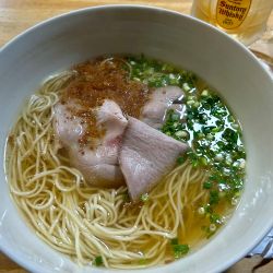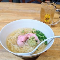提供は早いです。スープはかなり薄味の鶏出汁醤油ですかね。チャーシューは贅沢に3枚あります。ガー... 続きを見る