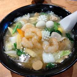 | メニュー | メニューの写真を見る ●エビ五目ラーメン(並盛・180g)968円 |