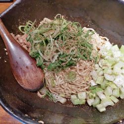 | メニュー | メニューの写真を見る 汁なし担担麺(0辛~4辛) 700円 |