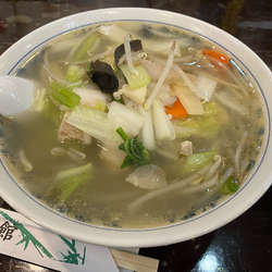 スープは、醤油ベースでしっかりとしたトロミ。いわゆる「サンマー麺」。味付けは穏やかで、旨味・塩味がもう少し強いと好み。