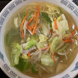 「五目そば 650円」@ちんや食堂の写真麺は細めで縮れる汎用的なやつ.体感130g.スープはごくあっさりの塩味.胃に全く負担にならない.キャベツ中心に玉ねぎやピーマンと鶏肉が2,3個.丁寧に包丁の入った椎茸に海老,筍,半玉が五目っぽい.腹7分目くらいで粋に食べるのが良い.近所だったら歩いてきてビール飲みたい.ちなみに釜飯がウリの食堂です.