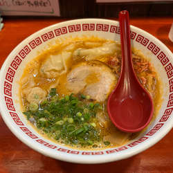 まずはスープ。濃厚なえび風味に若干の生臭さがある。もう少し濃厚な動物系出汁と塩味が効いていると好みだ。