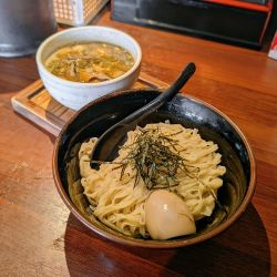 つけ汁inのキクラゲ·チャーシューと絡ませ