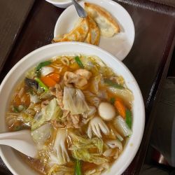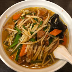 鶏ベースと思われる醤油味。しっかりした旨みと野菜の甘み。五目餡も合わさってなかなかうまい。