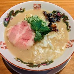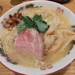 ちょっと変わった斑状のコシのあるちぢれ麺と濃厚な鶏スープのつけ麺。女性の店員さんらしく繊細な味わい。唐揚げも特大サイズで美味しかったです。今度はおすすめの岩のりダレ?も食べてみたいと思いました。