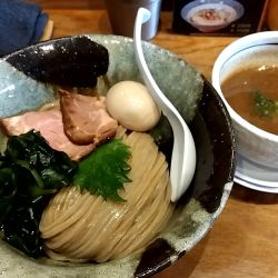 | メニュー | メニューの写真を見る 特製鶏煮干濃厚つけ麺(並・大盛) 1,150円 |