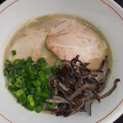 豚骨ラーメンの豚キチさんに訪問🚁ライトめのシンプルな博多風豚骨ラーメン🍜焼豚、キクラゲ、小ネギがのり、卓上のニンニク、高菜、紅生姜、ゴマをトッピング✨細麺はカタで注文し、麺量は130gかな❓ラーメン自体は突出したものはないが、鶏や豚の蒸餃子や多国籍なサイドメニューも楽しめる、市内ではあまりない豚骨ラーメンが食べられるお店でした🌈