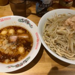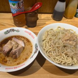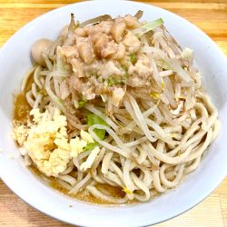 | 備考 | ・麺量…半分175g、少なめ250g、並350g、大500g ・食券を渡す際、麺量の指定(少なめ・半分)可能。 ・つけ麺は、あつもり可能。 ・提供時に、ヤサイ・ニンニク・背あぶらのコール確認有。 ・卓上調味料…カラメのタレ、一味唐辛子、ブラックペッパー |