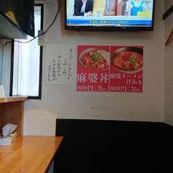 | メニュー | メニューの写真を見る 麻婆ラーメン汁なし 800円 |