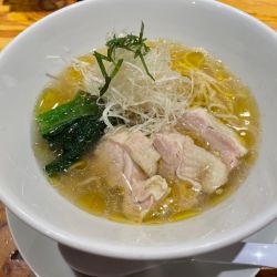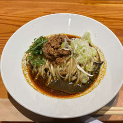 南船場「坦々麺くろおに」の「冷やしラーメン」、鶏出汁の冷製スープの冷やしラーメン。スープ冷たいけどしっかりコクと旨みがあってクソ暑い日はありあり。