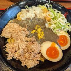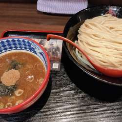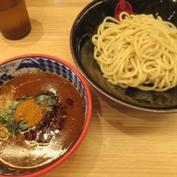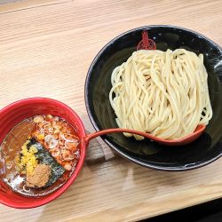 つけ汁は、ピリ辛の濃厚豚骨魚介系。