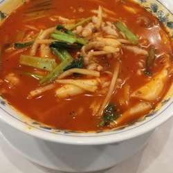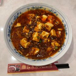 スープは、ややとろみがかっていて、しっかりとした麻婆感。「激辛です」と念を押されるが、常識的な麻辣味で、食べやすい。