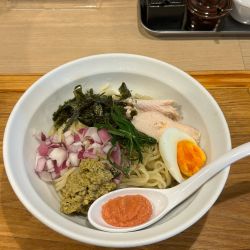 二度目の訪問。昼前だと言うのに、ほぼ満席。迷わず貝出汁塩ラーメンをオーダー。貝と昆布の旨味が染み出たスープはくせはなく、スッキリした味わい。小皿で提供されるアサリペーストを追加するとさらに味わい深くなる。麺もつるしこでスープをよく吸い上げ最高です。低温調理鶏チャーシュー、つくねもよくマッチしていると思います。味変に入れたショウガ、柚子胡椒は... 続きを見る