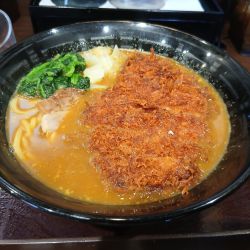 御客により英語。カツが分厚いが少し固め、チャーシューもあり