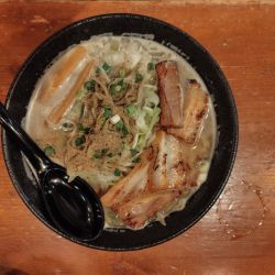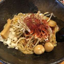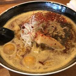 煮干し×鯛とのことで、濁りのあるスープからは微かに魚臭さがあり、苦手な人は気になるかもだが、自分的には問題なし。味わいはやや独特で、煮干しと鯛というより、甲殻類、例えば蟹のような風味も感じるもので、余りほかではなく、新鮮味はある。粘... 続きを見る