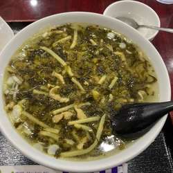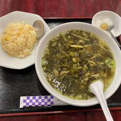 注文は高菜ラーメン+半チャーハンのセット。今日は初めから半チャーハン、杏仁豆腐は同僚にあげてラーメンのみに専念すると決めてきた。