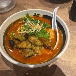 〆に訪問。トマトらーめんはたくさん食べたが、トマトソースみたいなスープでからならパスタ入れれば見たいのがほとんどだった。ここのには本当に感動した。豚骨とトマトの見事な融合。