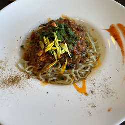 | メニュー | メニューの写真を見る 汁なし担々麺 950円 |