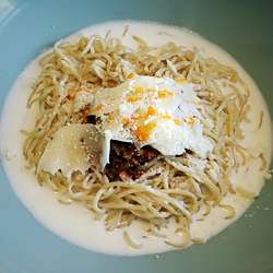 汁気が少ないのでいきなりぐりぐりと混ぜてみる.麺は中太の縮れたやつ.中華麺なのだろうけどポコっとした食べたことないタイプ.... 続きを見る