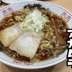 背脂粒の浮かぶガラ醤油スープ