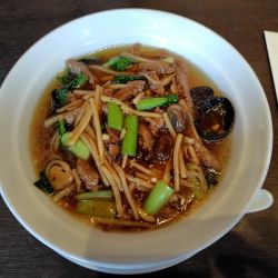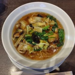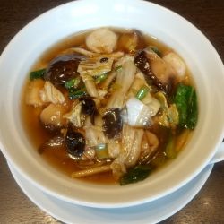 五目あんかけ(えび、貝柱、白菜、小松菜、タケノコ、干し椎茸、ふくろ茸、青ネギ)