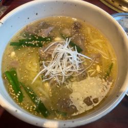 ややかための食感の中太麺に牛出汁効いた塩スープが美味いです。