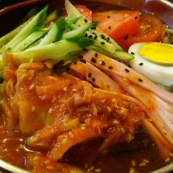 具の胡瓜やハム、トマトはいいとして、何故かキムチ。錦糸卵なし。