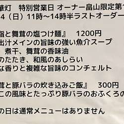 | 備考 | 「麺屋 彩音 ~Sign~」さんのセカンドブランド 日曜日限定営業 |