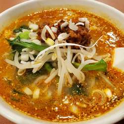 【注文】四川風タンタンメン定食(990円)。麺に半炒飯、小籠包、漬物、スープ、デザートがつくセットだ。小食キャラの自分にはやや重いセットだ。