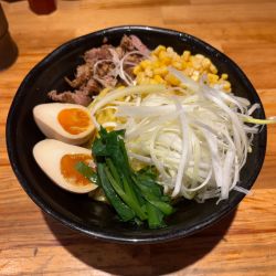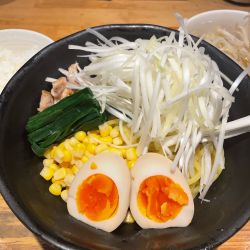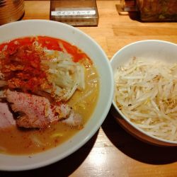 ちょうど席が空いたところで、1分ほど待たされ席に案内され、待つこと9分ほどでラーメンが提供された。