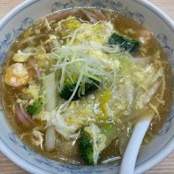 しんとこは新所沢からきているらしい。創業の地である新所沢の初代店長が考案した、あんかけラーメンとのこと。かき玉スープのラーメンは珍しいので楽しみ。