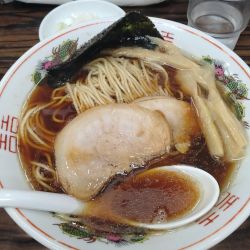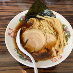 デフォでチャーシュー2枚。メンマも長く量もある。とてもリーズナブル。
