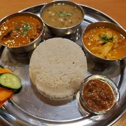 【注文】日替わりカレー(ひよこ豆&チキン)・辛口・ナン・ラッシー(950円)。本当はパラウタを食べたかったのだが、今は扱っていないとのこと(牛カレーも扱っていなかった)。
