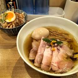 | メニュー | メニューの写真を見る あごだし鶏らぁ麺《薄口》950円 |