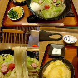 てゆか冷水でしっかり〆られたうどんゎプリッ♪とした食感でガッシリとした歯応え…麺量ゎこの中盛で450㌘とのコトなので大盛(600㌘)も行けるかな...(笑) んで合わさるツユゎ濃いめ&甘めでもぅ一歩… そしてとり天ゎ今日ゎ少し薄手の大判だったが安定のお味♪