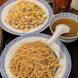 土曜日の12時ちょうどに到着、入店。6人掛けの円卓をアクリル板で3つに仕切った席に案内される。卓上のアクリルカード立てや下敷きのメニューを見てから標題を口頭注文。まずはドラゴンハイボールが登場。古越龍山を使用しており、さっぱりとした口当たりがとても好み。アルコール注文のサービスつまみは無し。ランチタイムは提供可能なメニューを絞っているとあって比較的早々にセット一式がお盆で到着。... 続きを見る