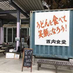 浪江出張時のランチに讃岐うどんメインの食堂を訪問。店は浪江の市街地から車で10分程山側に入った場所。コンテナを改造したような建物が3棟建っていて、2棟が客室で1棟が厨房になっている。