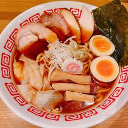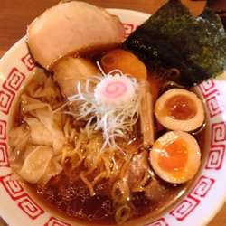 | 備考 | 立食いそば 千花庵の跡地。 麺は中太麺か平打熟成の選択が可能。 以下、店内掲示の要約。 手打ち熟成麺:白河中華そばの手打ち麺を再現した多加水麺。 中太麺:三種の粉をブレンドした多加水麺。 スープ:「鶏ガラ・親丸鶏」「豚ゲンコツ・背ガラ」「真鯛」「宗田鰹・鮪・鯖」「鯵・鰯」を使用。 醤油だれ:生揚げ醤油、再仕込み醤油と日高昆布、干し貝柱、魚介を使ったタレ 塩ダレ:沖縄・フランス・モンゴル産の塩を配合し、日高昆布、干し貝柱、干しエビを使った塩ダレ 叉焼:豚バラを煮込み秘伝のタレに漬け込んだ叉焼。 |