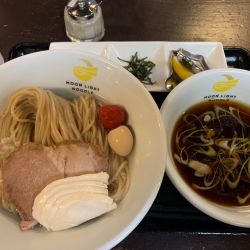 博多駅でラーメンを、と思って博多めん街道を覗いたら長蛇の列。諦めて駅近くをうろついているとこちらが視野に。ま、あまり迷っても仕方ないので入ることにしましょう。おっと、近頃頂きたかった昆布水つけ麺がありますね、ではこれでお願いします。最初塩のみで味わってから、つけ汁につけてズバズバ、うまいですねー。細めの麺も好みの味、博多の豚骨以外の底力を垣間見た感じです。ご馳走様でした。