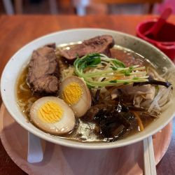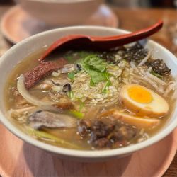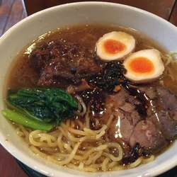新橋のワインバーのランチ営業で牡蠣ラーメン。清湯塩スープにゴロっと牡蠣のほか煮込んだ牛タンも入って具沢山。麺は盛岡から取り寄せたと言う冷麺っぽいツルシコ麺。不思議な組み合わせ。