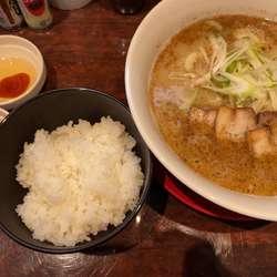 鯖節と鶏白湯のダブルスープ。ライスはサービスです。